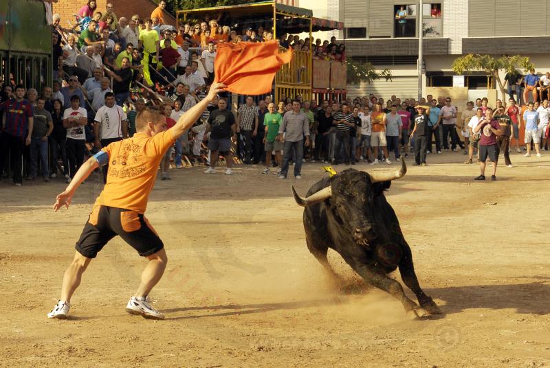 A continuación un toro cárdeno bragado del hierro de José Escolar hizo su salida raudo y veloz hacia el centro de la plaza donde pronto mostro su encaste desluciendo el encuentro y arrancándose a su aire con peligro, mostrado una morfología avacada y escuálida sobre una importante cabeza. Los dos toros fueron guardados para ser embolados por la noche no sin problemas con el de Escolar que hizo caso omiso a los cabestros. La tarde prosiguió con la exhibición del ganado de Cantera prolongando la jornada taurina en Les Alqueries.